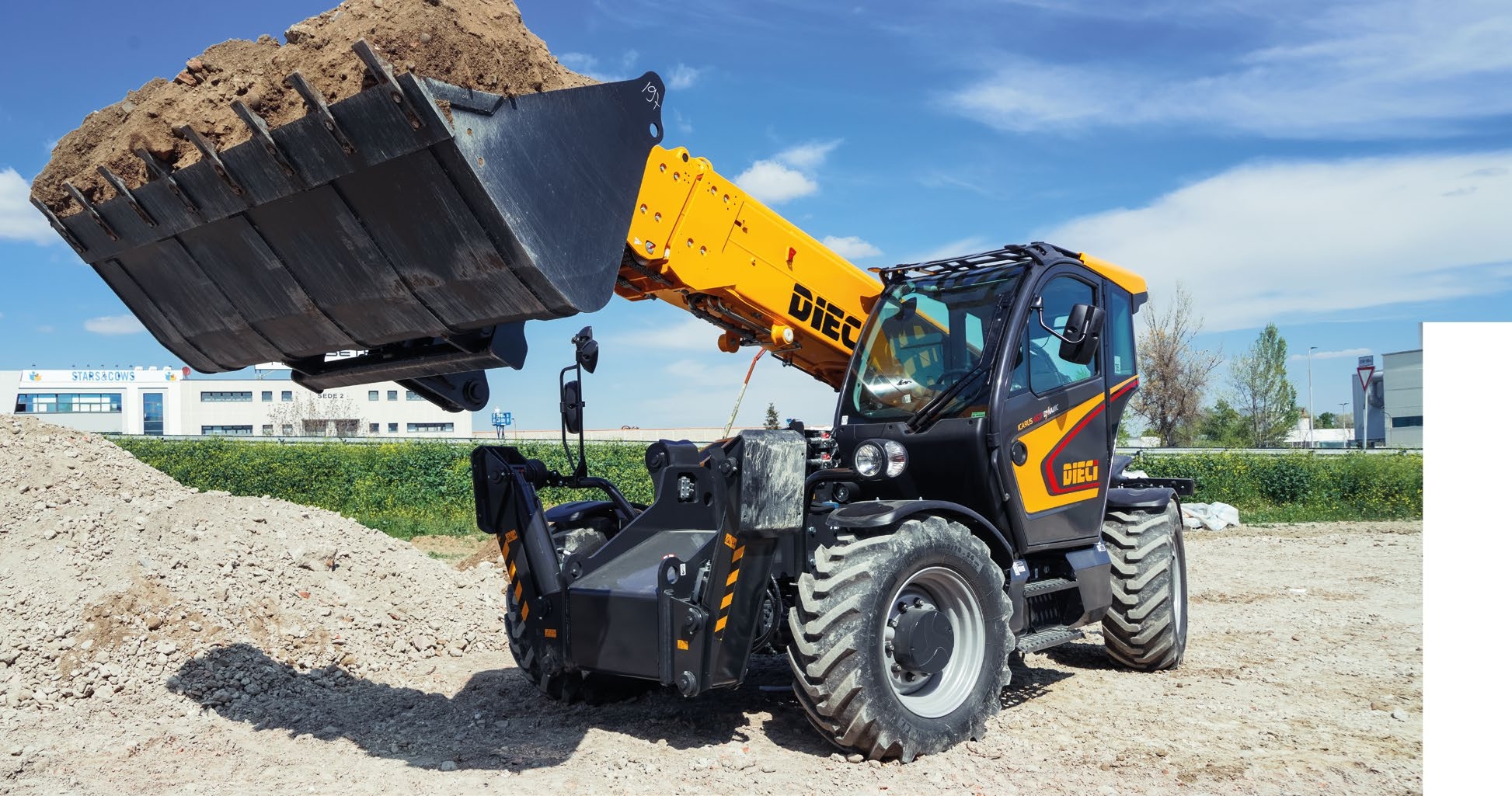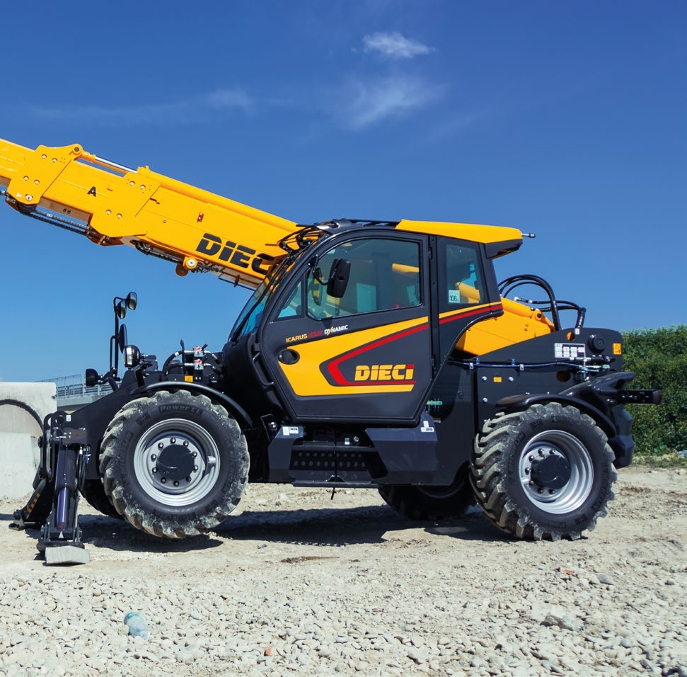 DIECI Icarus 45.14 GD to wytrzymała ładowarka teleskopowa klasy budowlanej, projektowana z myślą o intensywnym wynajmie i placach budowy wymagających dużego udźwigu. Udźwig 4 500 kg i wysięg 13,4 m pozwalają swobodnie przenosić palety, kosze robocze czy elementy prefabrykowane. Dwie wysuwane sekcje ramienia oraz proporcjonalne podpory stabilizujące z poziomowaniem poprzecznym gwarantują pewność i precyzję nawet przy maksymalnym zasięgu.