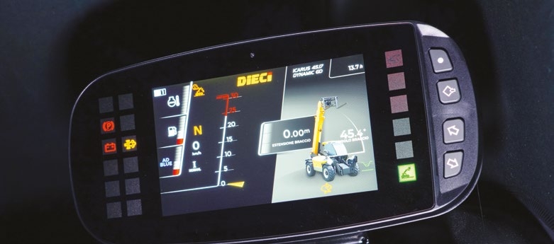 Przestronna kabina ROPS/FOPS z półautomatyczną klimatyzacją, fotelem pneumatycznym, ekranem TFT 7″ i kamerą cofania zapewnia komfort całodziennej pracy. Oświetlenie LED 360°, wentylator z rewersem i system rozpoznawania osprzętu podnoszą bezpieczeństwo i obniżają koszty eksploatacji. Icarus 45.14 GD – moc, zasięg i prostota obsługi w jednym.