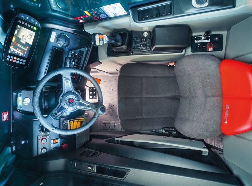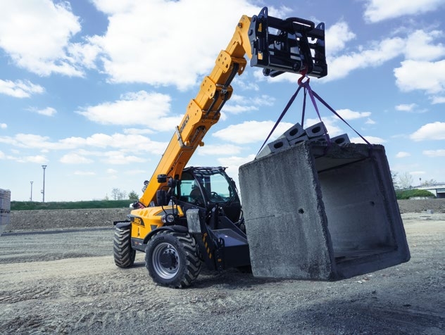 Jednostkę napędową stanowi 55 kW (74 KM) silnik Kubota Stage V bez AdBlue, współpracujący z oszczędnym napędem hydrostatycznym ECO (CVT) i dwubiegową skrzynią. Wysoka wydajność hydrauliczna 102 l/min @ 27 MPa z rozdzielaczem 4 w 1 Full Electric oraz joystickiem FNR ułatwia obsługę osprzętu – od wideł (karetka 5 t w zestawie) po kosz osobowy 800 kg.
